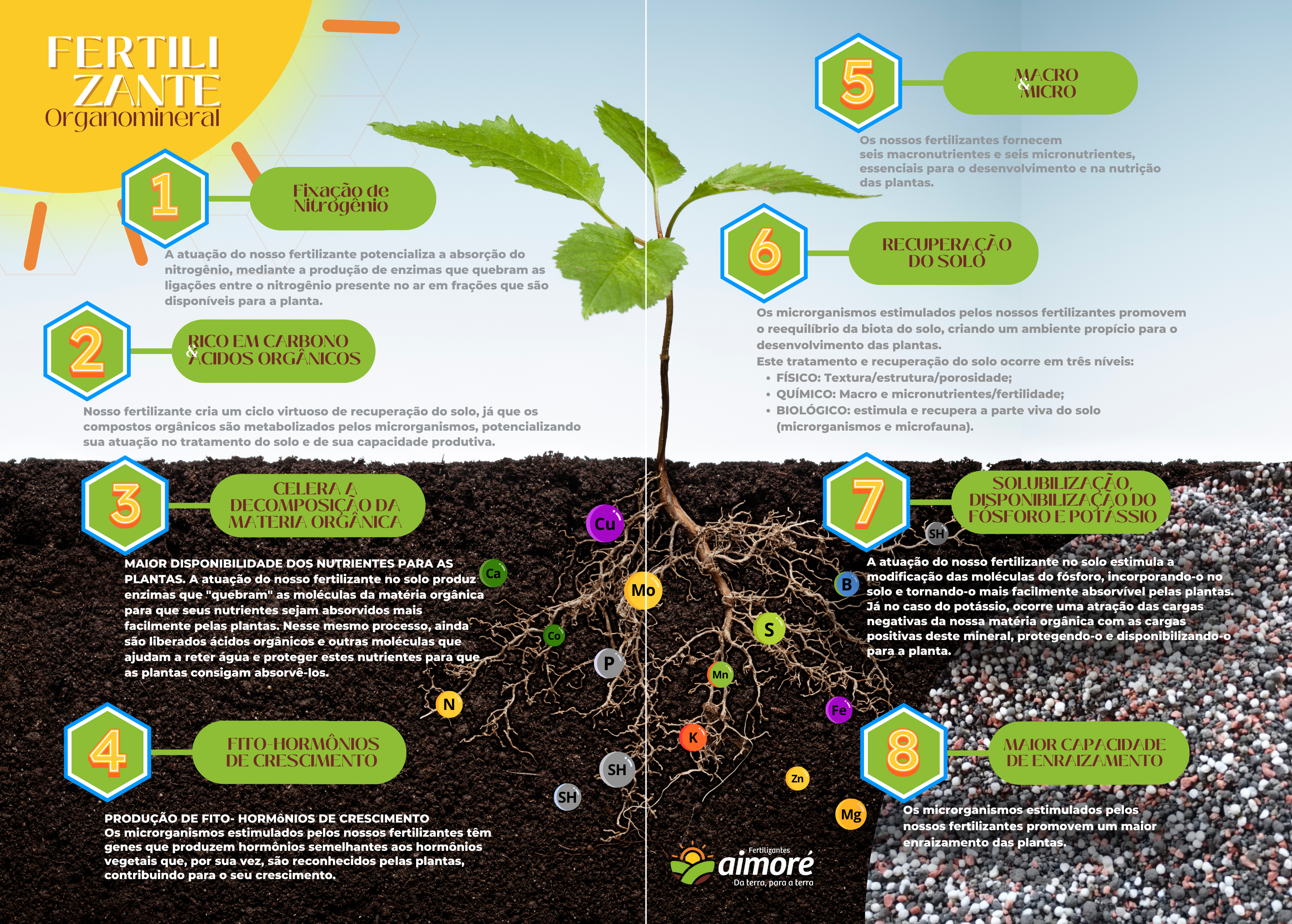 Estimula a microbiota do solo, favorecendo o equilíbrio biológico e a saúde das plantas.